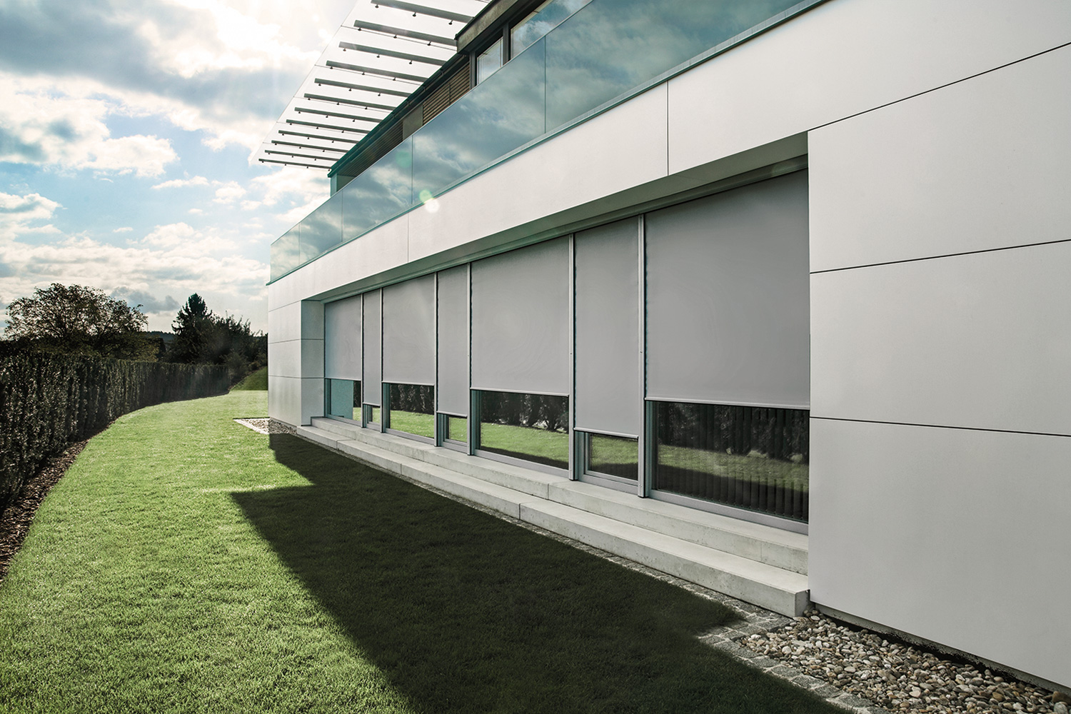 Textilscreens von ROMA bieten Ihnen die perfekte Lösung! Denn sie überzeugen nicht nur durch erstklassigen Sonnenschutz, sondern halten gleichzeitig eine natürliche Raumatmosphäre aufrecht. Dank vielfältiger Gestaltungsmöglichkeiten läßt sich der Sonnenschutz optimal an die Architektur des Hauses anpassen und das ganz nach dem persönlichen Geschmack. Und noch dazu müssen Sie sich nie wieder um starken Wind oder nervenaufreibende Reparaturen sorgen. Denn ROMA Textilscreens sind wetterfest und praktisch wartungsfrei.